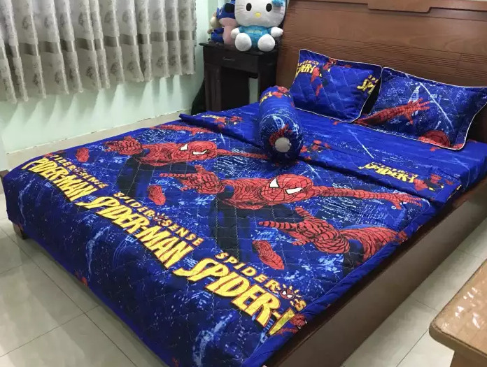 Màu sắc của các bộ chăn, ga gối người nhện, người dơi khá ảm đạm.