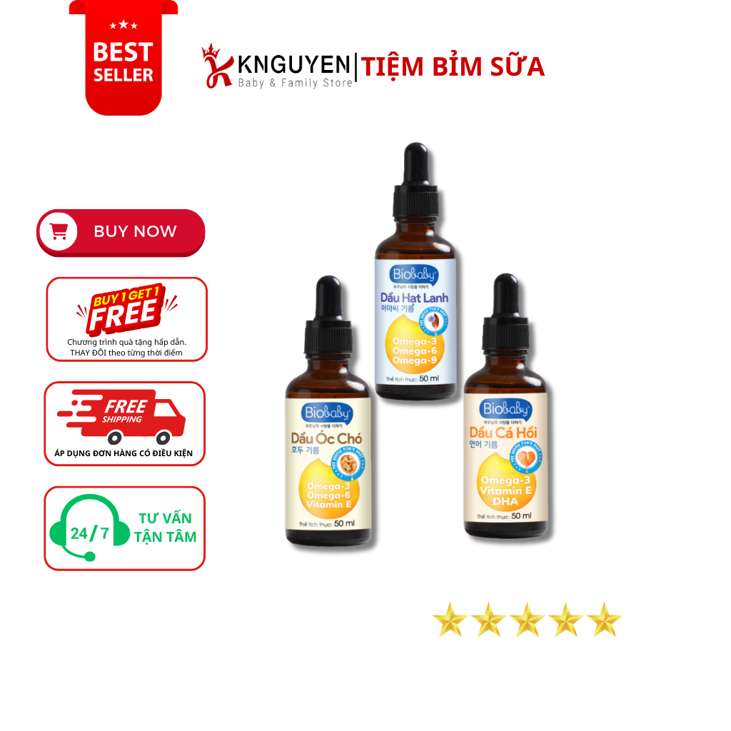 - Các loại chính: Dầu cá hồi (phát triển trí não/DHA), Dầu óc chó (Omega-3/trí não), Dầu gấc (Vitamin A/thị lực), Dầu hạt lanh (miễn dịch), Dầu mè (tiêu hóa), Dầu olive (vitamin E/da).