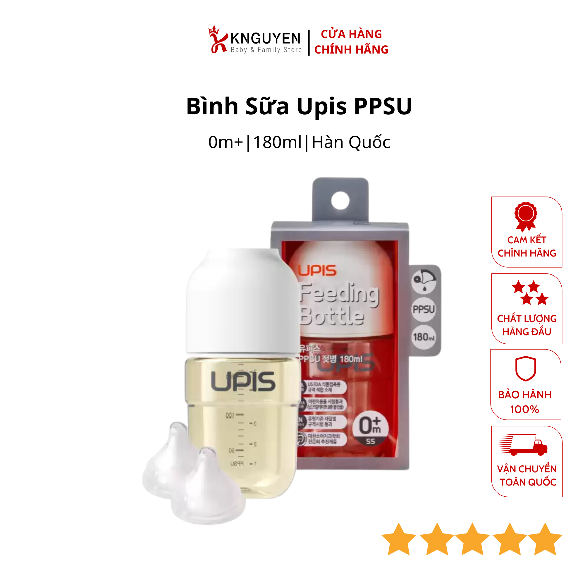 Bình sữa Upis PPSU 180ml – núm 0M+