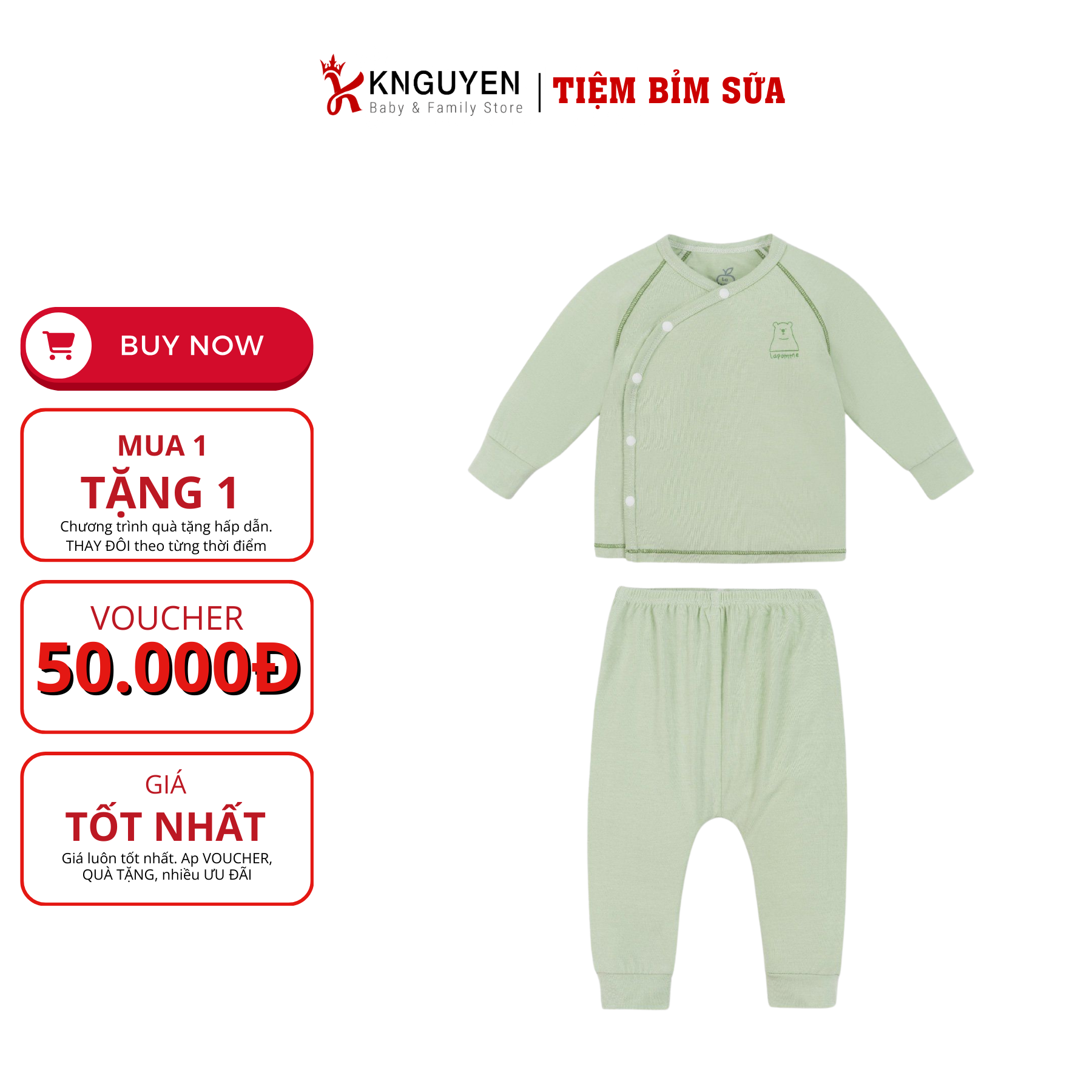 Bộ dài tay cúc lệch La Pomme thắt nơ