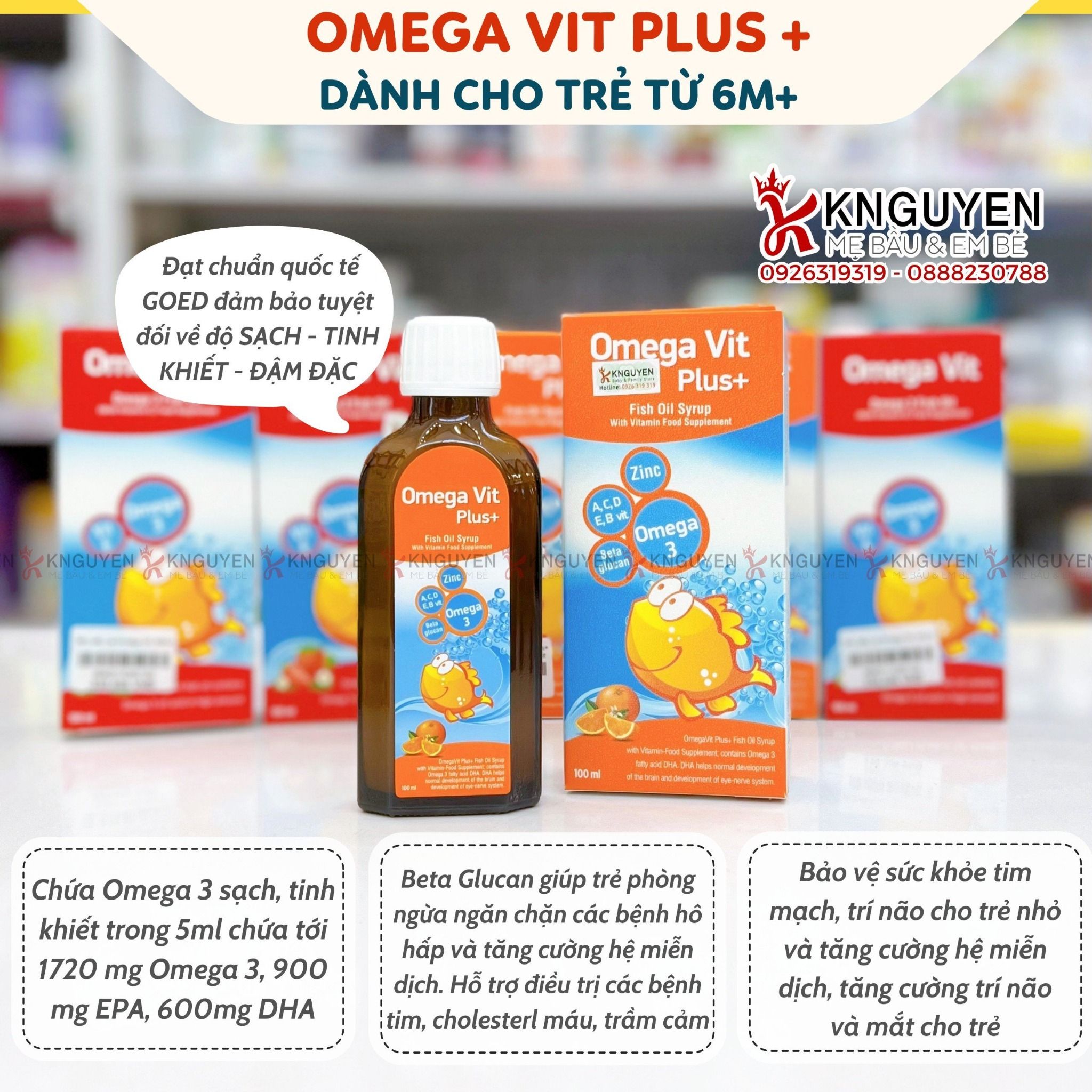 Dầu cá Siro Omega Vit Plus+ tăng cường đề kháng, tốt cho não bộ và mắt chai 100ml