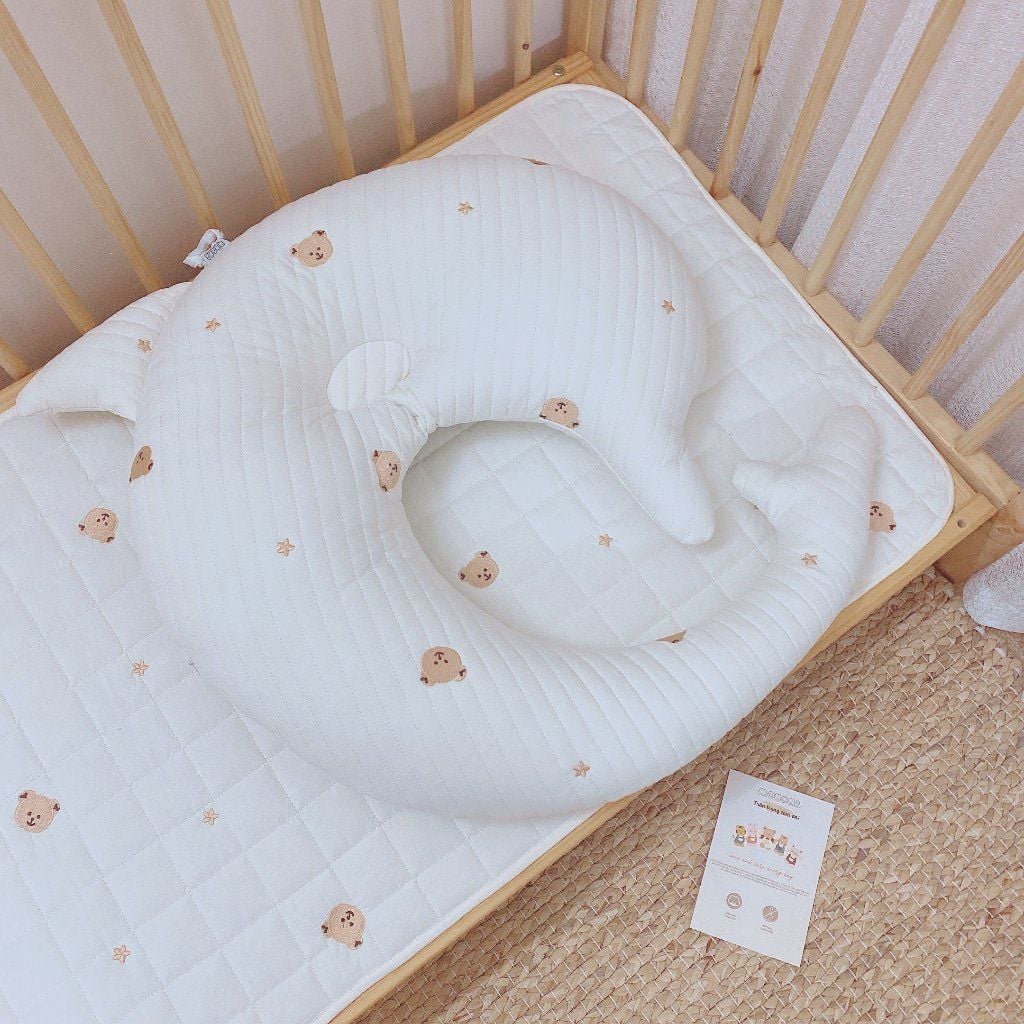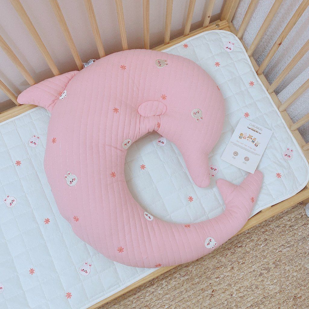- Hỗ trợ phát triển tư thế: Gối chặn giúp định hình tư thế ngủ của bé, hạn chế tình trạng méo đầu, plagiocephaly.