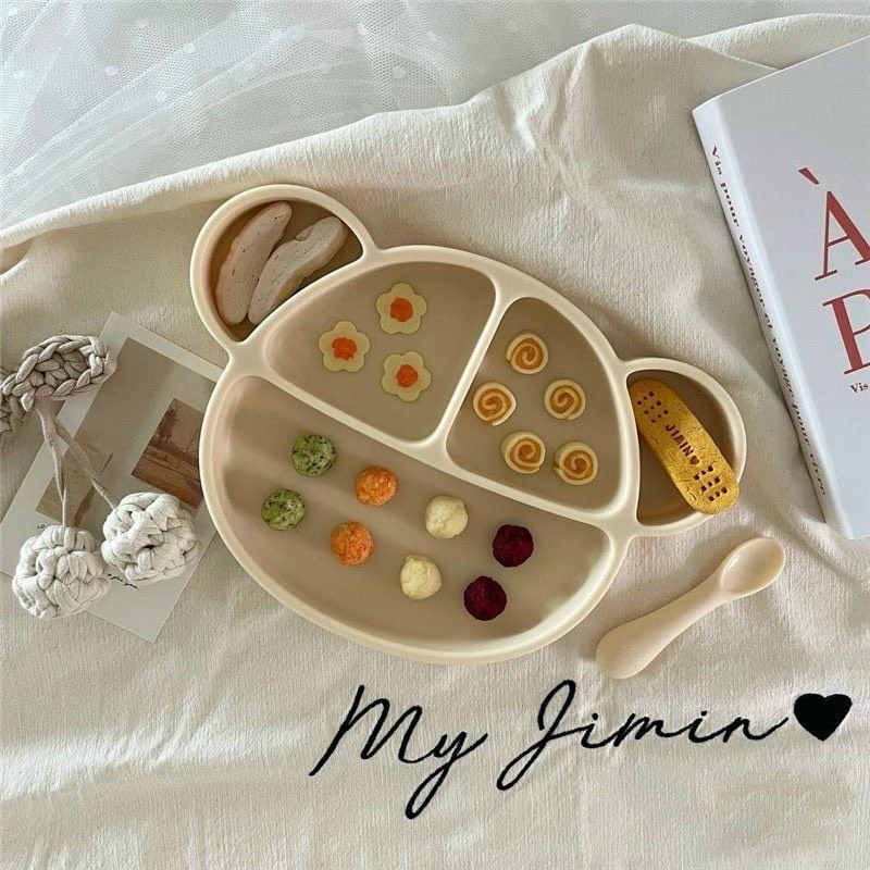 Khay Ăn Dặm Silicon Hình Gấu Bar-Rot có nắp