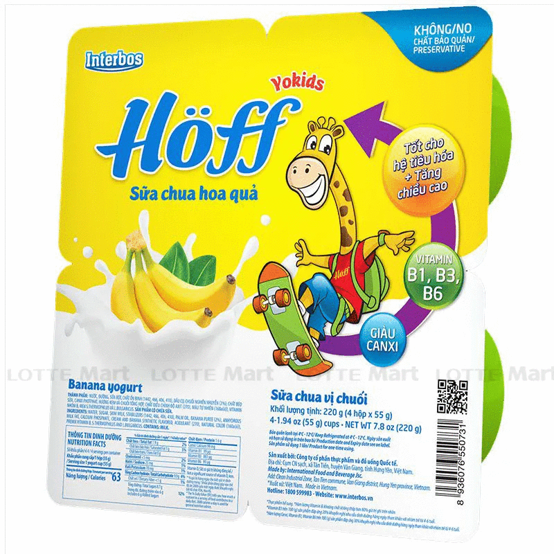 Sữa chua hoa quả trẻ em Hoff Đức 6m+ (4 hộp x 55g)